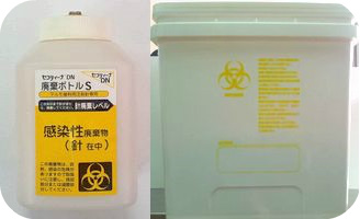 注射針は針さし防止のため、1回限りの使用とし、刺入後は直ちに専用の廃棄箱で廃棄しております。